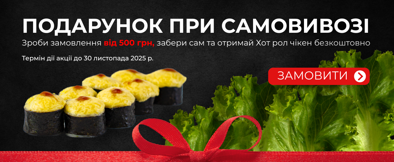 У нас працює точка видачі ролів, сетів і напоїв за адресою: м. Чернігів, вул. Соборності, 10.