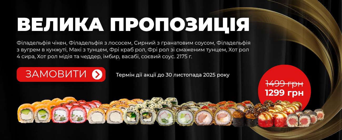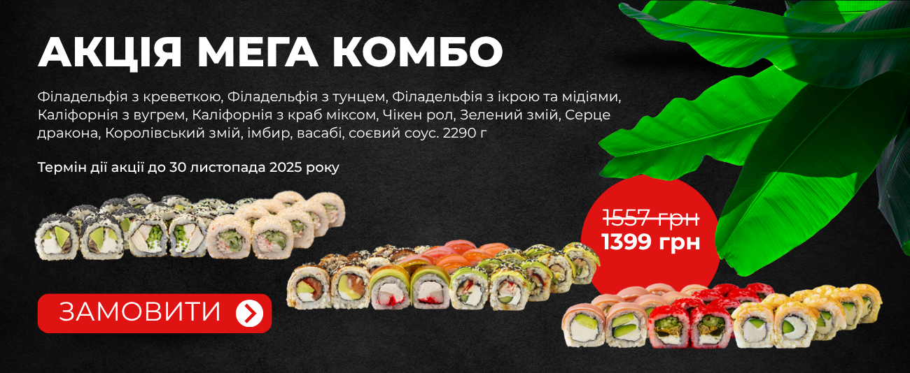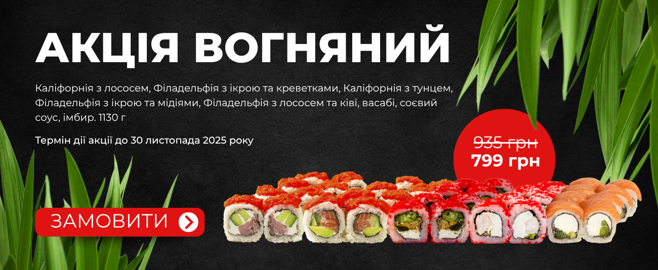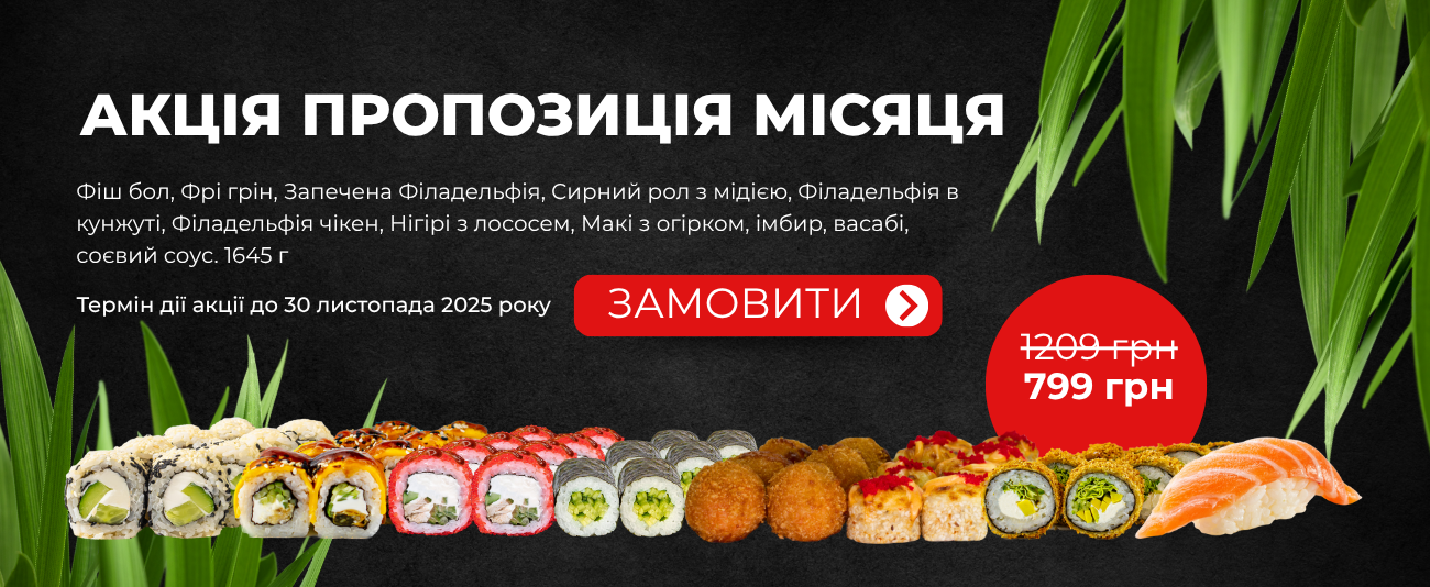 - У нашому меню страви японської кухні на будь-яких смак. Навіть будучи сильно вибагливим до їжі, ти все рівно знайдеш щось смачненьке у нашому суші-меню.