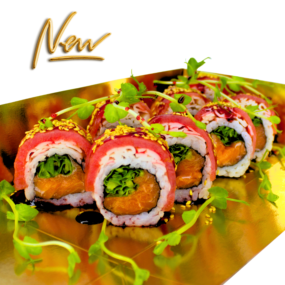 Норі, рис, лосось, тунець, сурімі, салат, соус Наршраб, кунжут, мікрогрін, лимон, імбир, васабі, соус Фірмовий