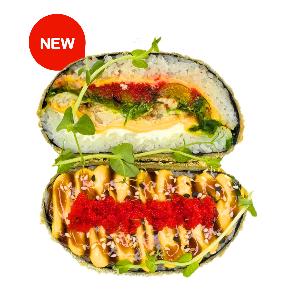 Рис, норі, крем сир, сир Чеддер, вугор, манго, ікра червона тобіко, хіяши, темпура, Панко,соус Унагі, соус Сирний, кунжут мікс, мікрогрін, Соєвий соус