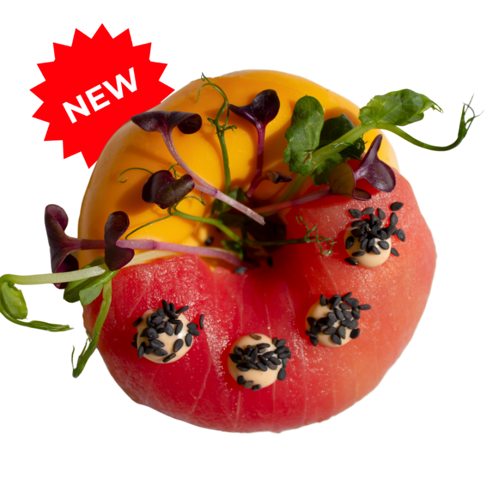 До складу входить: Норі, рис, крем-сир, сир чеддер, тунець, соус спайсі, мікрогрін, кунжут, соєвий соус, імбир, васабі
