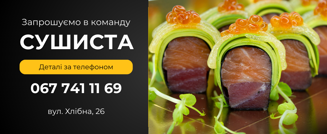 - У нашому меню страви японської кухні на будь-яких смак. Навіть будучи сильно вибагливим до їжі, ти все рівно знайдеш щось смачненьке у нашому суші-меню.
