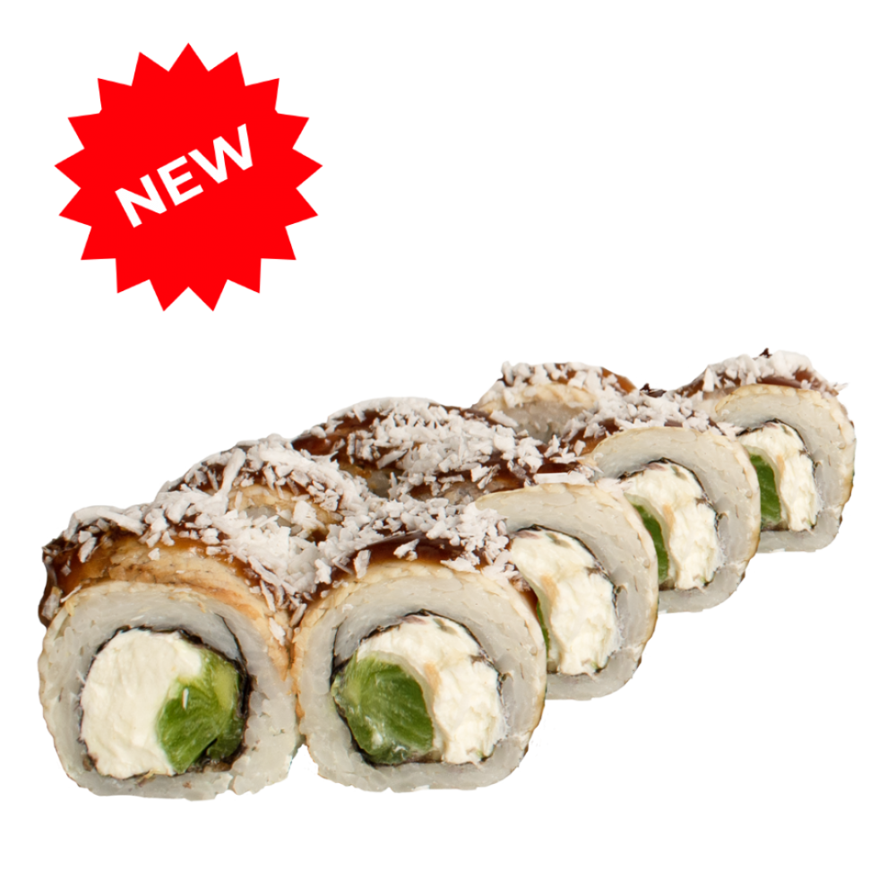 До складу входить: Норі, рис, крем сир, вугор, ківі, кокосова стружка, соус унагі, васабі, соєвий соус, імбир.